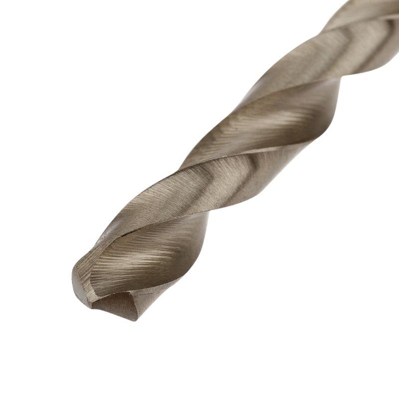 Режущая часть инструмента заточена под углом 135 градусов, что способствует более эффективному проникновению в материал, уменьшая износ сверла.