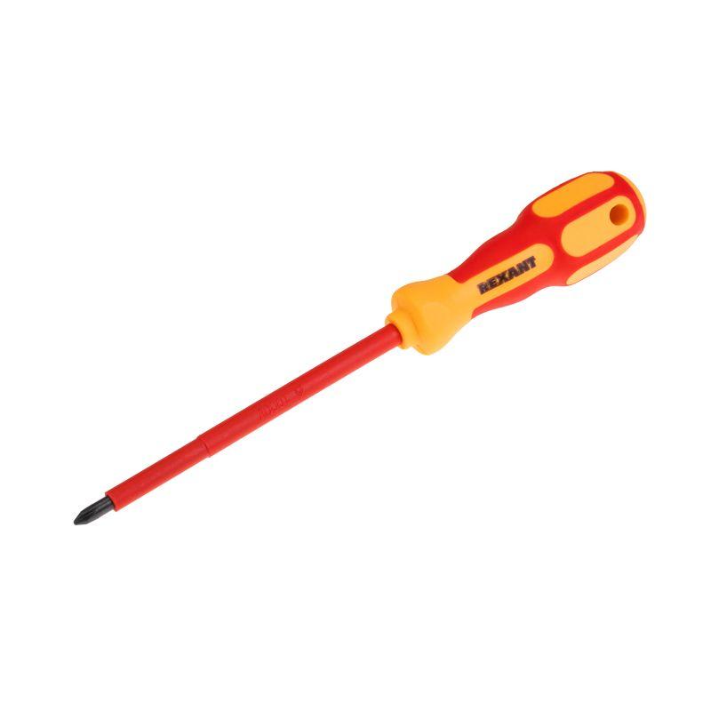 Стержень отвертки, выполненный из высококачественной хромованадиевой стали, покрыт специальным изоляционным материалом и оснащен оксидированным намагниченным наконечником.